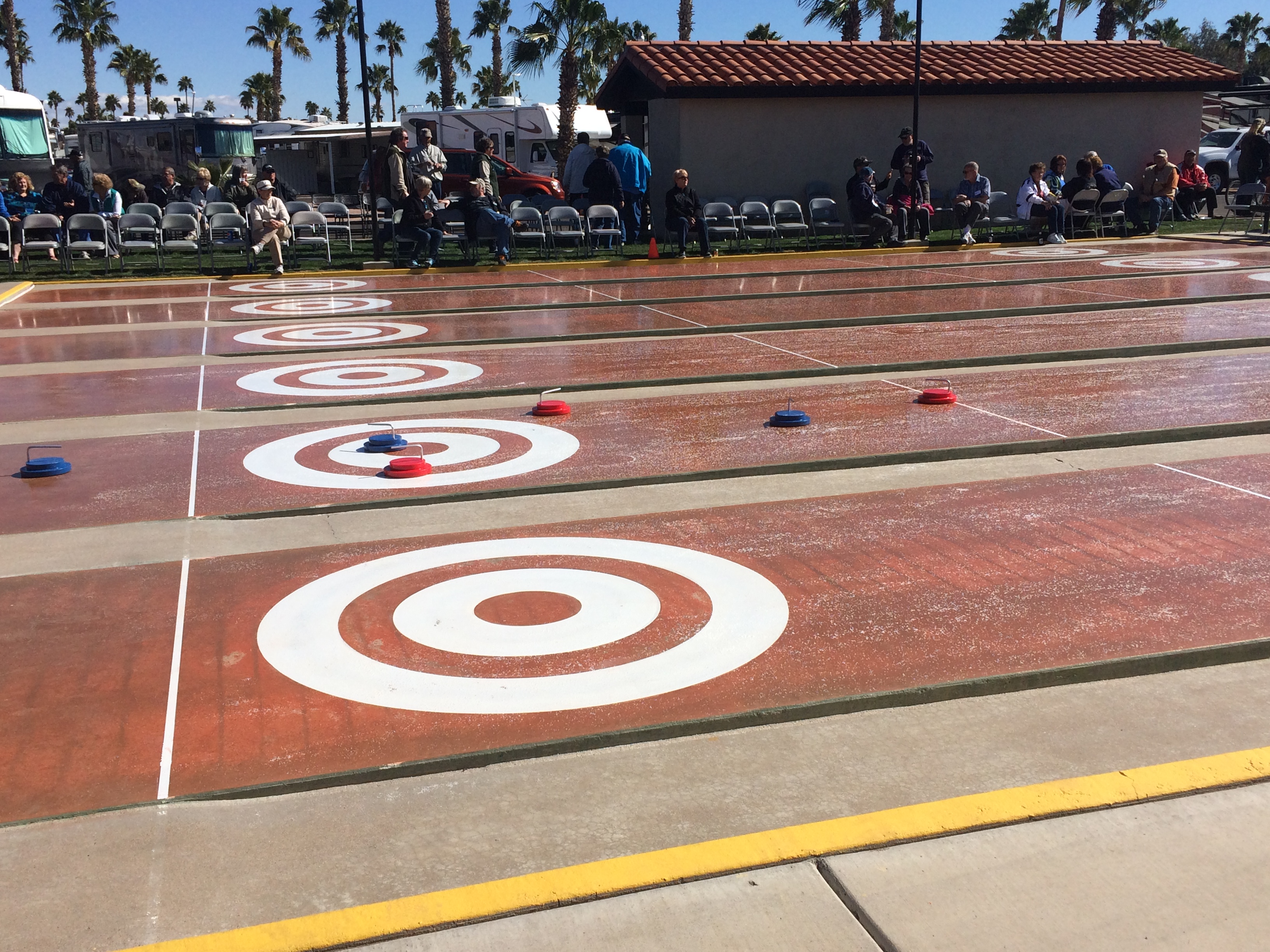 3. Except for the player throwing the Poly Rocks, the others should be off the curling sheet on each end to avoid an accident.